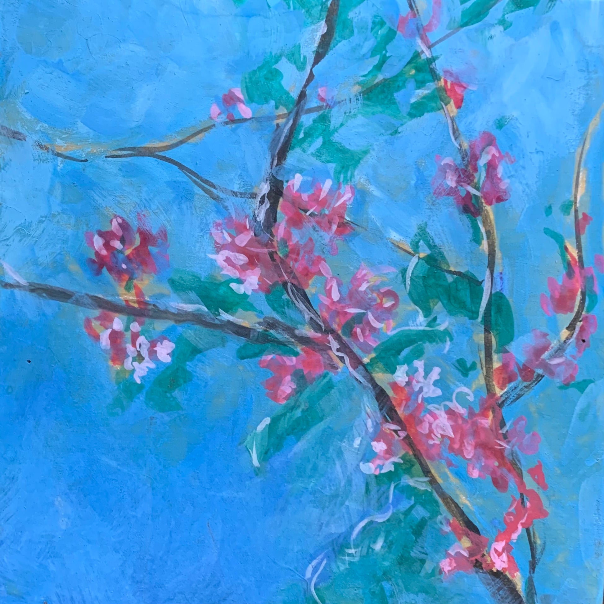 25.Lynne Lund, Food for Blue/Pink Eudia Tree, Ulysses Butterfly Tree, Oil, 15x15cm